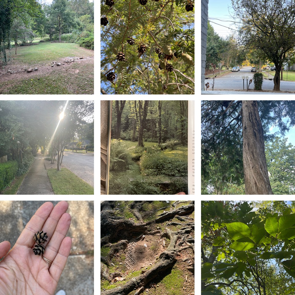 Feeling invigorated by my writing and the coffee, I decided to walk to the Oakhurst Community Garden which another friend who lives in the same area told me about. And oh. My. Goodness. It was the most PERFECT place I could have ever gone on this particular day, while working on this particular project. I’d have stayed all day long if I hadn’t gotten hungry or needed to pee after an hour or so. I made plans to return the following day with my car and laptop so that I might purchase plants and write beneath the shade of one of their many, beautiful trees.